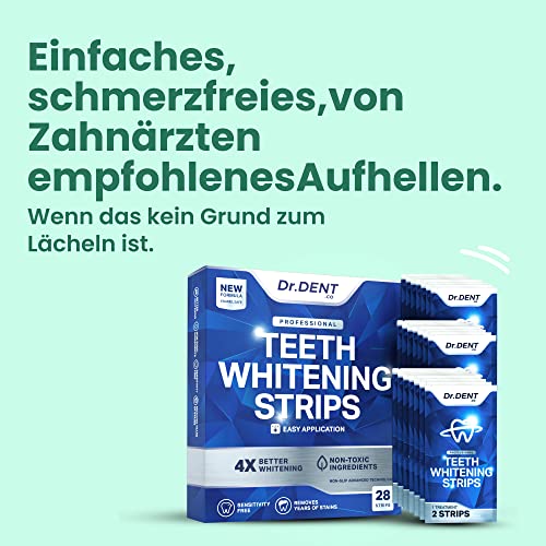 DrDent Professionelle Teeth Whitening Streifen – 14 Behandlungen – Unbedenklich für Zahnschmelz – Zahnaufhellung – Zahnbleaching Set – Natürliche Inhaltsstoffe – Packung mit 28 Streifen + Mundöffner