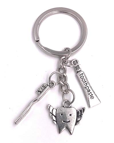 H-Customs Zahnarzt Zahn Bürste Schlüsselanhänger Anhänger Silber aus Metall